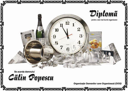 | Diploma pentru cea mai buna organizare o va primi cel care a demonstrat sau e pe cale sa demonstreze ca poate sa organizeze o manifestatie de care mai apoi sa se bucure toata lumea. Felicitari! |