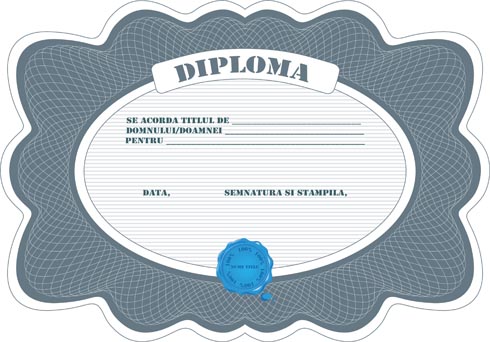 | Diploma clasica, se preteaza la orice fel de competitie sau ca si recunoasterea faptului ca a terminat un curs. Are diverse elemente de siguranta, care o fac greu de copiat sau imitat. Diploma este disponibila in diferite culori, la cerere. |