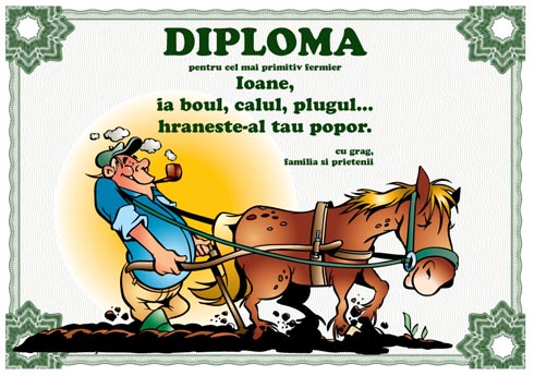 Diploma pentru cel mai primitiv fermier