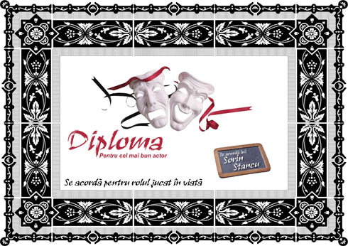 | Cunoastem unii dintre noi oameni care desi nu au ajuns sa se numeasca actori au acest talent, de a se transpune cu succes in diferite roluri. Diploma pentru cel mai bun actor este o recunoastere a faptului ca esti intr-adevar - un bun actor - poate doar in viata de zi cu zi, nu conteaza. |